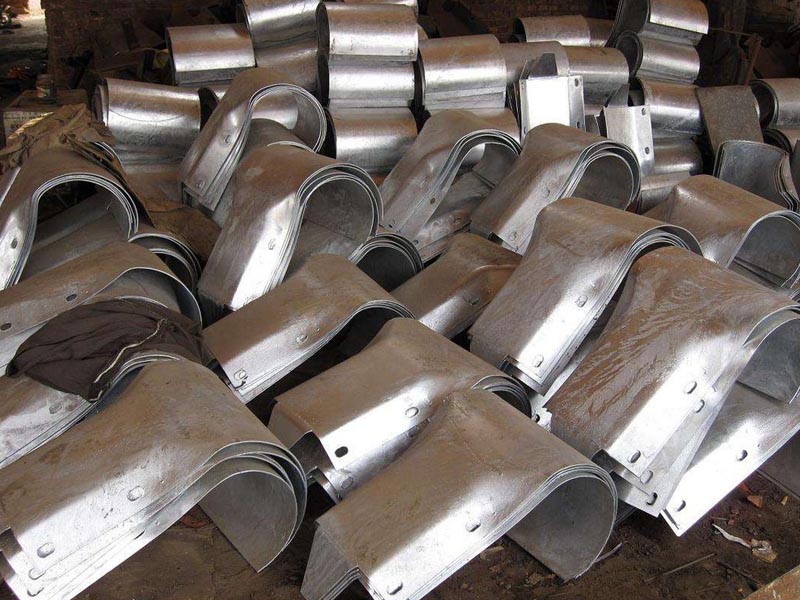 護欄板配件包括:護欄板端頭、立柱、雨帽、螺栓、護欄板防組塊等,在零部件中使用量較少的是護欄板端頭,因為1公里的護欄板成為一組,每組護欄板由250個立柱、250塊護欄板組成,在每組護欄板的兩端安裝兩個護欄板端頭。所以在波形護欄板配件中端頭是使用量小的。